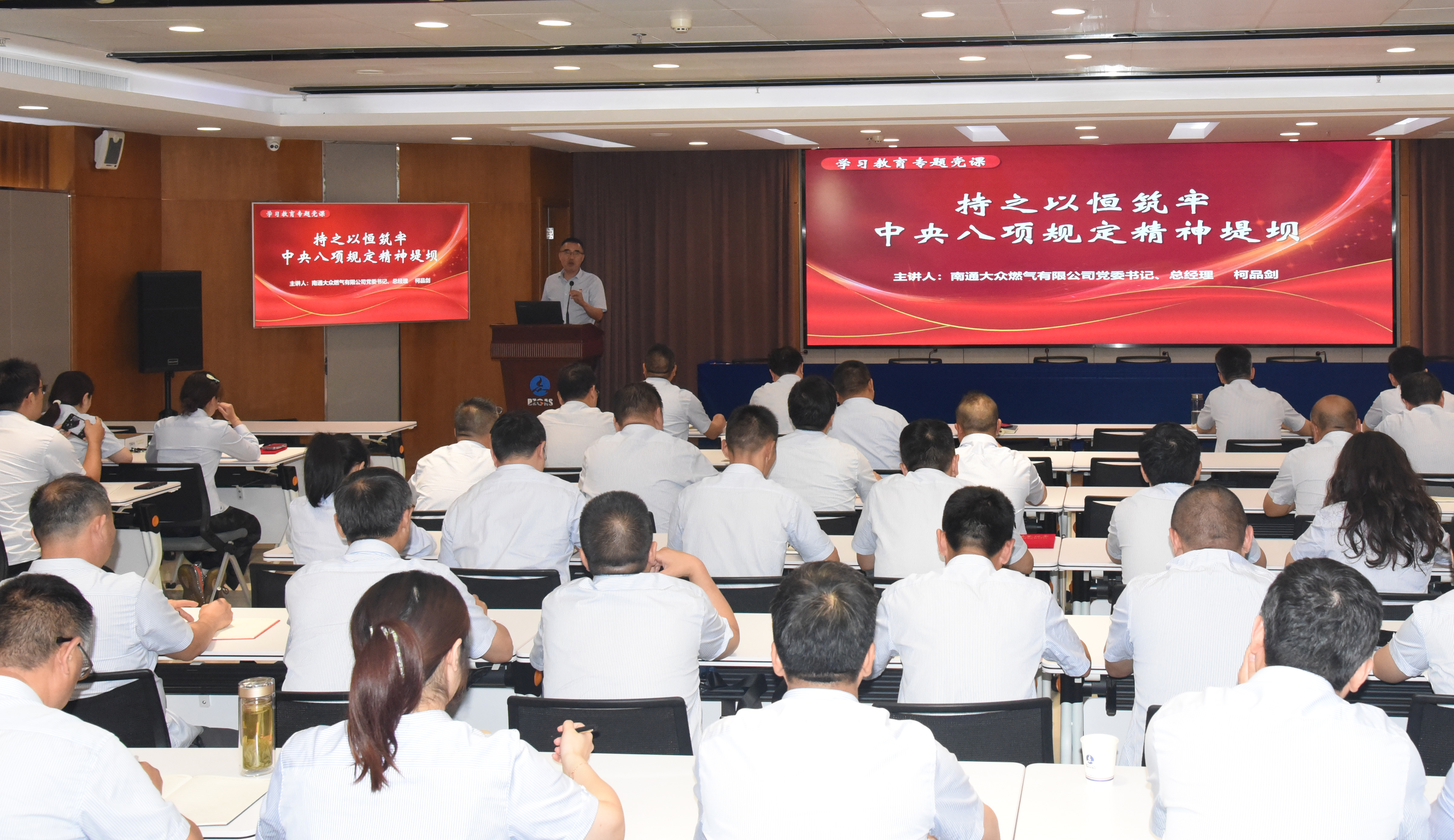 會上,公司黨委書記、總經(jīng)理柯品劍同志授專題黨課《持之以恒筑牢中央八項規(guī)定精神堤壩》。黨課從“堅持優(yōu)良作風(fēng)”、“堅持對標一流”、“堅持以上率下”、“堅持久久為功”四個方面展開,政治站位高、理論內(nèi)涵深、實踐指導(dǎo)強,要求全體與會人員要結(jié)合工作實際,認真剖析自身不足之處,以學(xué)促行,常思常改,切實把學(xué)習(xí)教育的要求融入日常,引領(lǐng)業(yè)務(wù)工作攻堅克難,為企業(yè)高質(zhì)量發(fā)展凝聚強大合力。